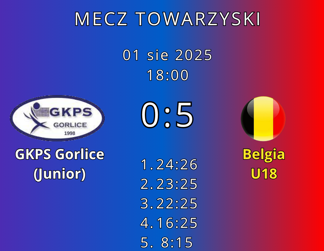 Pomimo różnicy w warunkach fizycznych oraz doświadczeniu, nasi zawodnicy postawili rywalom bardzo trudne warunki w pierwszych trzech setach. Gorliczanie kilkukrotnie doprowadzali do remisu, a nawet obejmowali prowadzenie, pokazując ambitną i odważną grę. Niestety, w końcówce trzeciego seta dało o sobie znać zmęczenie, Belgowie wykorzystali swoje ogranie i przechylili szalę zwycięstwa na swoją stronę.
